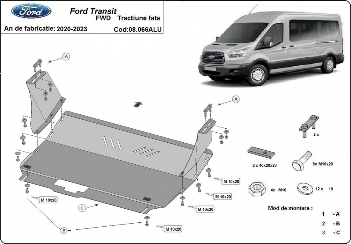 Aluminium protection sous moteur et de la boîte de vitesse Ford Transit FWD (2020-2023)