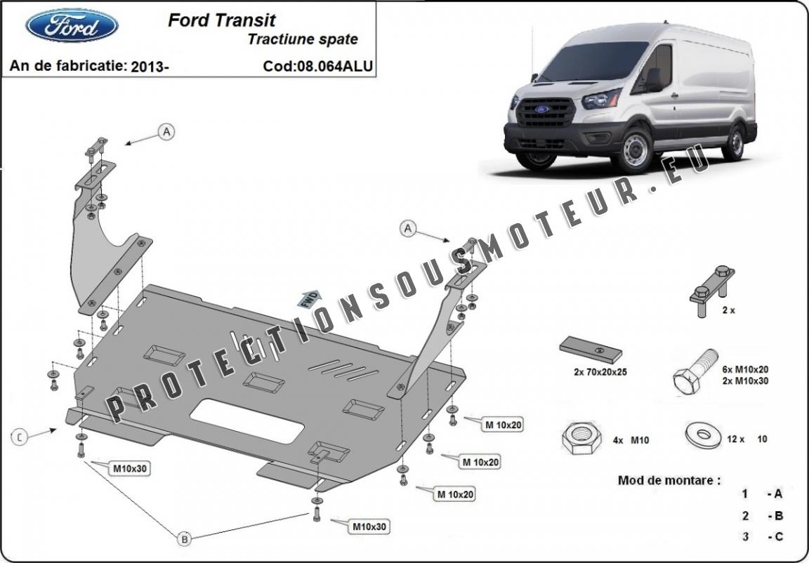 Aluminium protection sous moteur et de la boîte de vitesse Ford Transit RWD (2013-2025)