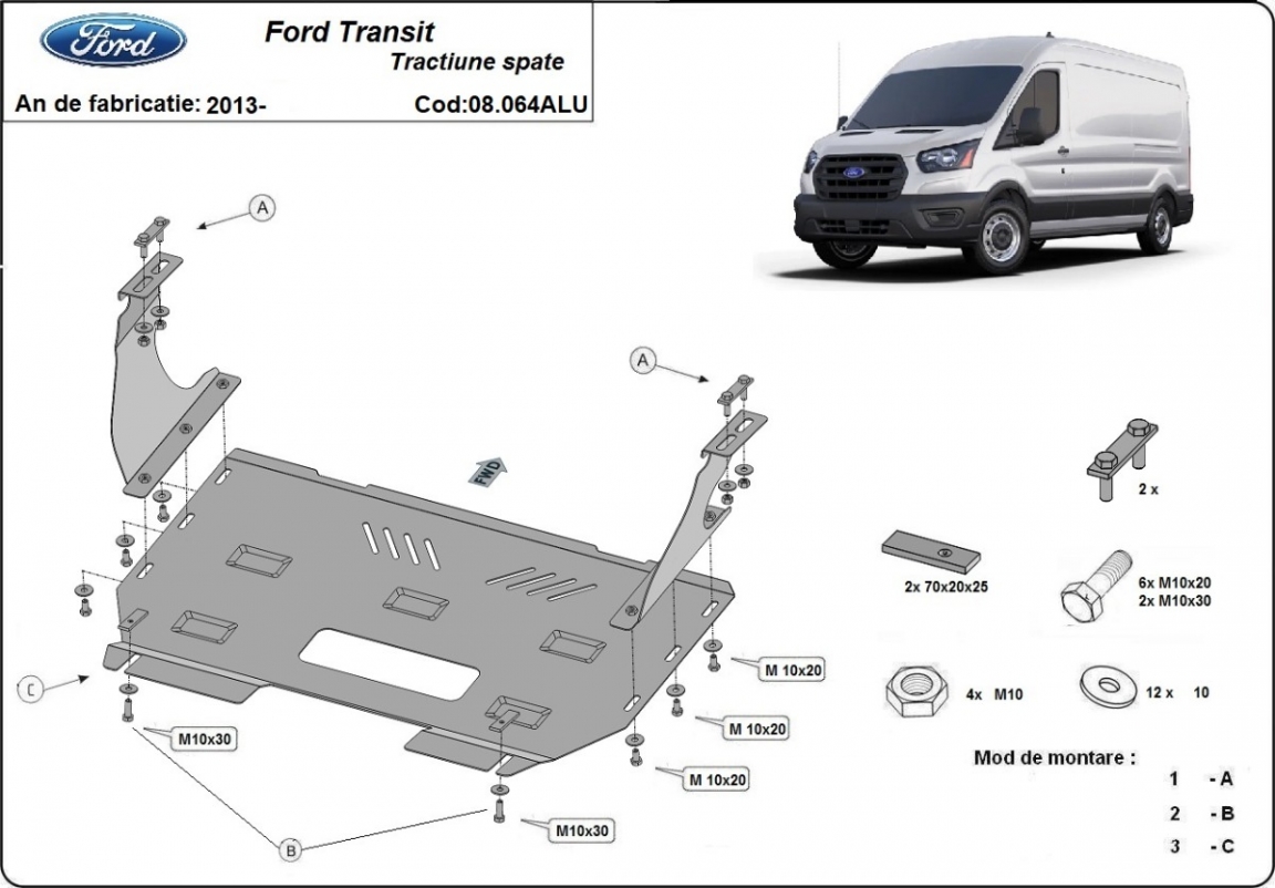 Aluminium protection sous moteur et de la boîte de vitesse Ford Transit RWD (2013-2026)