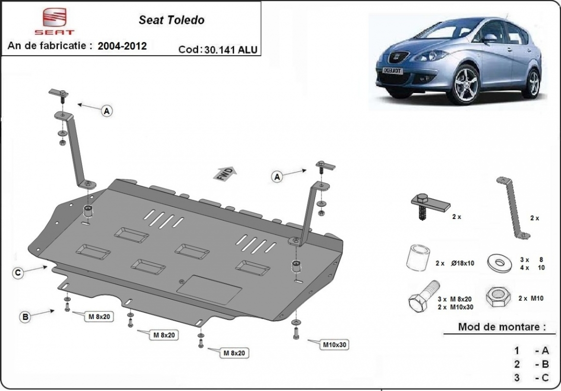Aluminium protection sous moteur et de la boîte de vitesse Seat Toledo 3 (2004-2012)