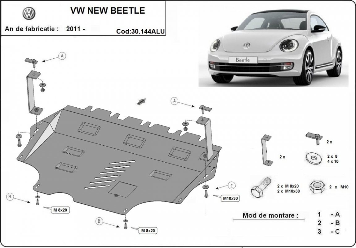 Aluminium protection sous moteur et de la boîte de vitesse Volkswagen New Beetle (2011-2017)