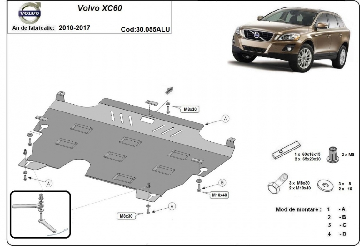 Aluminium protection sous moteur et de la boîte de vitesse Volvo XC60 (2010-2017)
