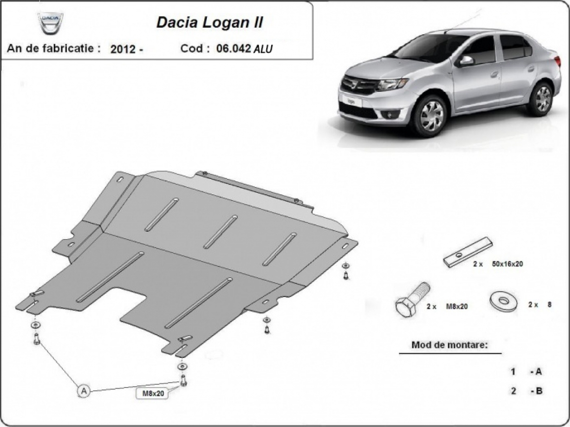 - Aluminum protection sous moteur et de la boîte de vitesse Dacia Logan 2 (2012-2020)