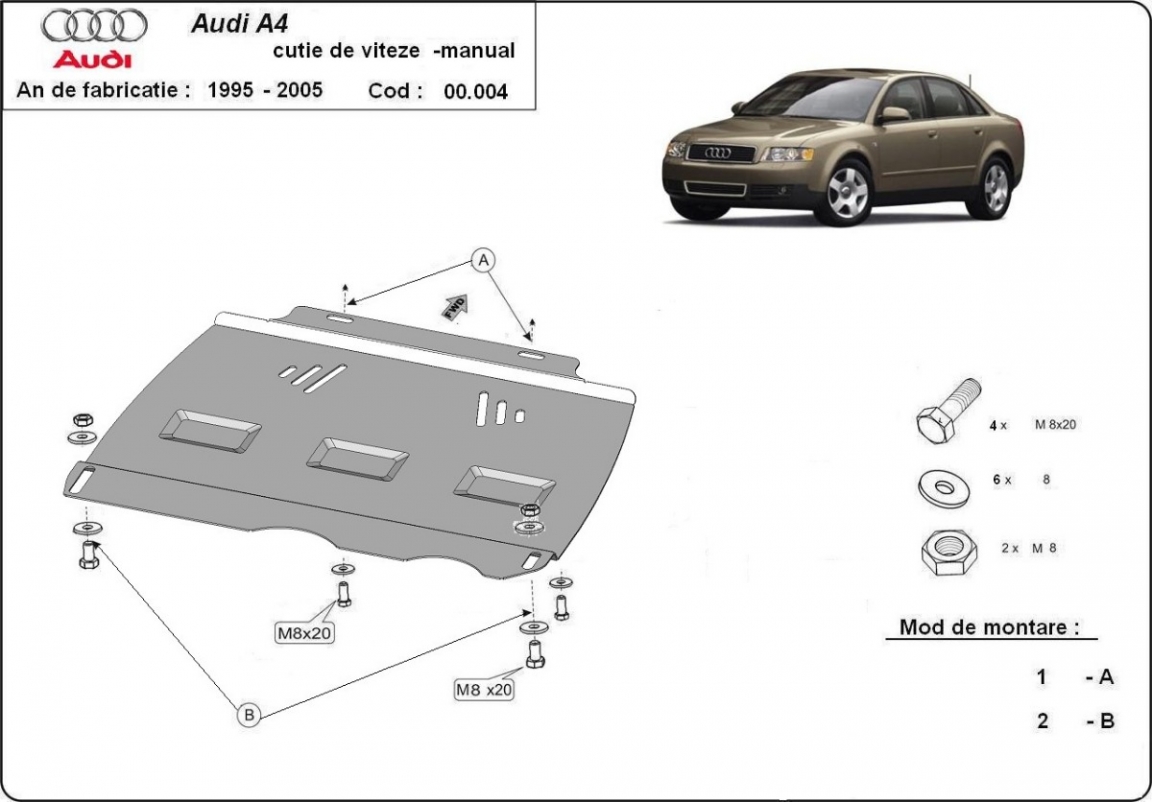 Protection de la boîte de vitesse Audi A4 B6 - manuelle (2000-2005)