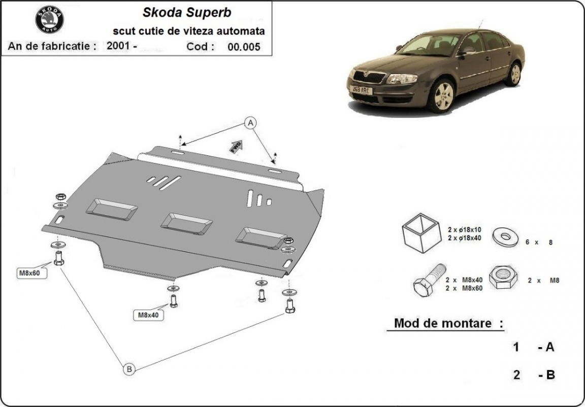 Protection de la boîte de vitesse Skoda Superb - automatique (2001-2008)