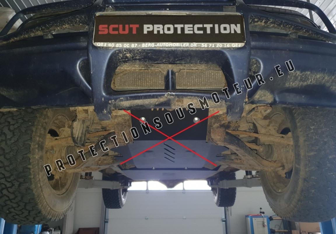 Le cache métallique protège: la boîte de vitesses Le cache de protection est réalisé en Acier thermolaqué avec une épaisseur de 3 mm. Vis, écrous, pinces, tous les accessoires de fixation sont inclus. Toutes les plaques de protection sont revêtues de poudre pour prévenir la corrosion. L'extérieur de la plaque de protection est doté de renforts en Acier thermolaqué, ce qui augmente la résistance aux chocs. |