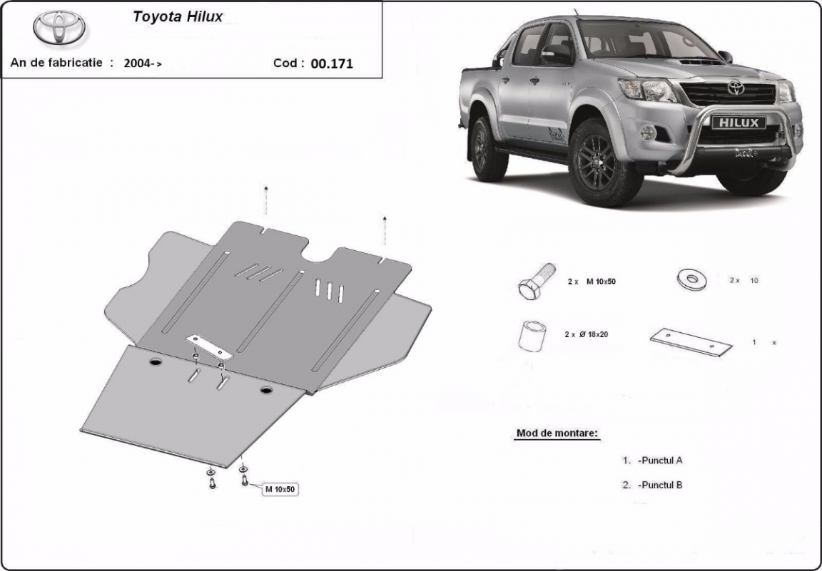 Protection sous moteur et de la radiateur Toyota Hilux