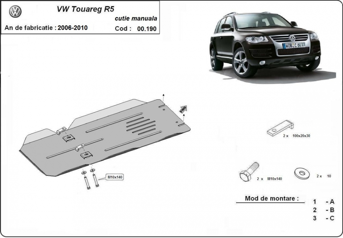 Protection de la boîte de vitesse manuelle VW Touareg 7L (2006-2010)