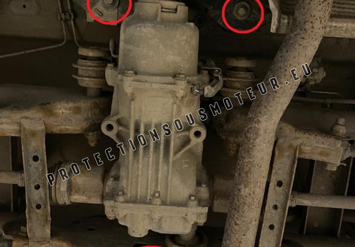 Le cache métallique protège: différentiel Le cache de protection est réalisé en Aluminium avec une épaisseur de 4 mm. Les boucliers sont en aluminium, mais les supports de fixation sont en acier. Vis, écrous, pinces, tous les accessoires de fixation sont inclus. Toutes les plaques de protection sont revêtues de poudre pour prévenir la corrosion. L'extérieur de la plaque de protection est doté de renforts en Aluminium, ce qui augmente la résistance aux chocs. |