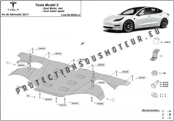 Protection moteur électrique arrière en aluminium – Tesla Model 3 AWD (2017-2026)