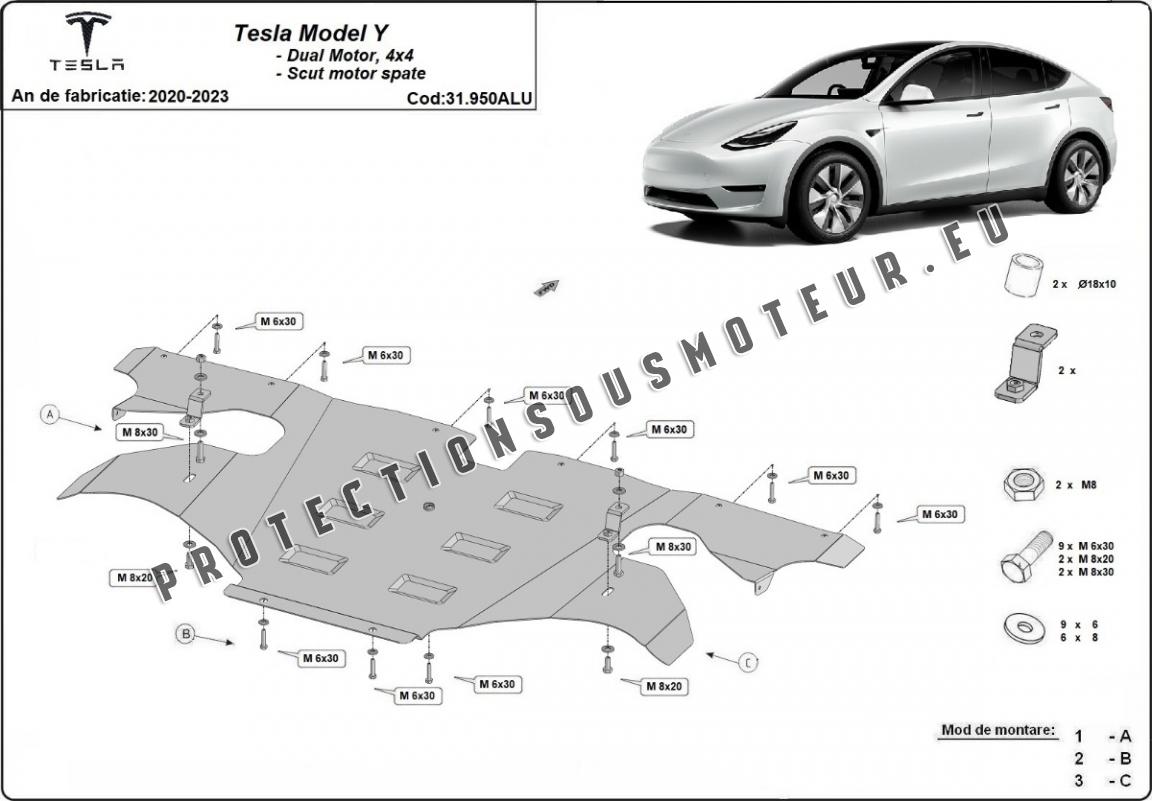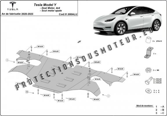 Protection moteur électrique arrière en aluminium – Tesla Model Y (2020-2023)