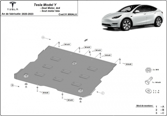 Protection moteur électrique avant en aluminium – Tesla model Y (2020-2023)