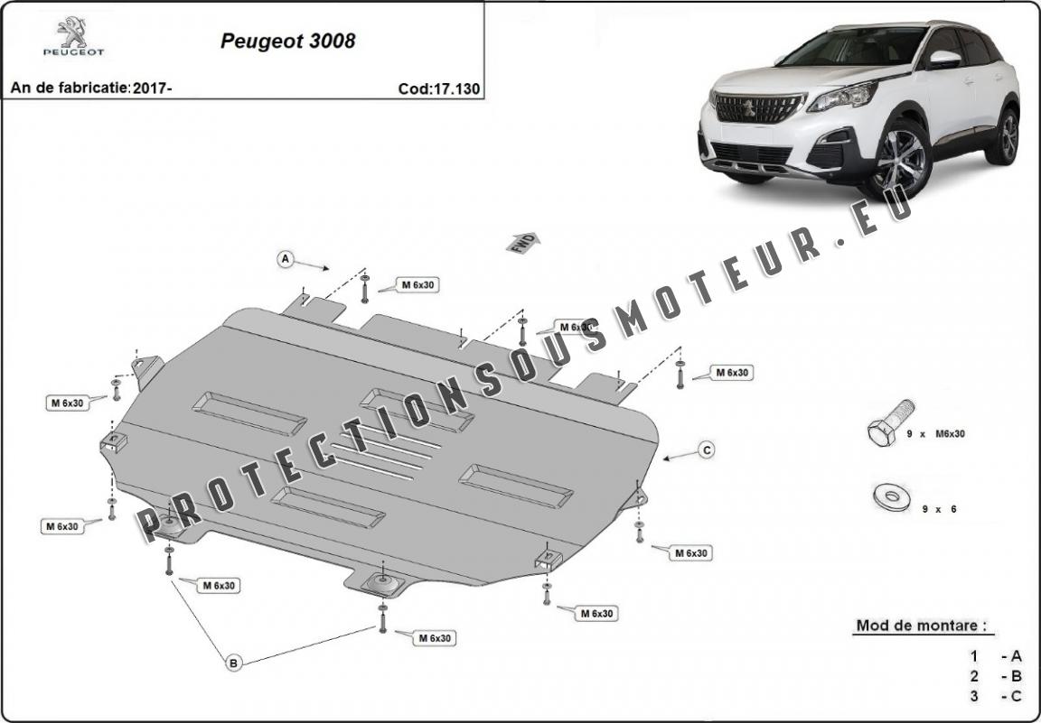 Protection sous moteur et de la boîte de vitesse Peugeot 3008 (2017-2025)
