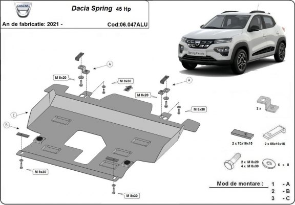 Protection sous moteur et de la boîte de vitesse Dacia Spring - Aluminium (2021-2026)