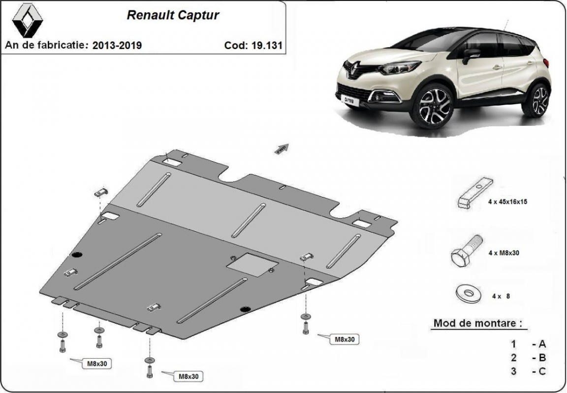 Protection sous moteur et de la boîte de vitesse Renault Captur (2013-2019)