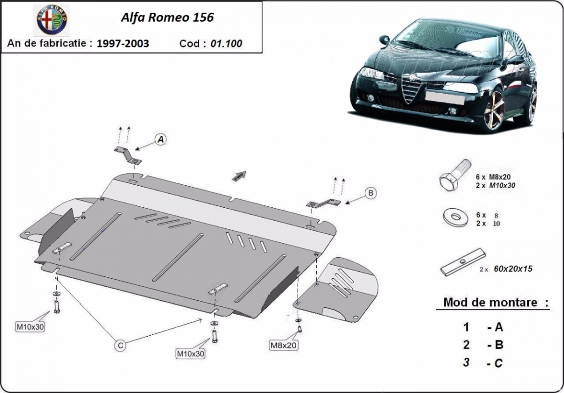 Protection sous moteur et de la boîte de vitesse Alfa Romeo 156 (1997-2003)