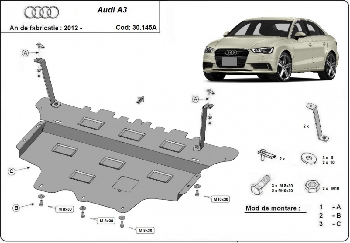 Protection sous moteur et de la boîte de vitesse Audi A3 (8V) - Boîte de vitesse automatique (2012-2020)