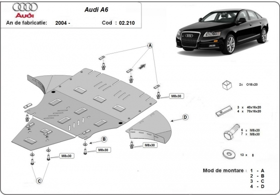 Protection sous moteur et de la boîte de vitesse Audi A6 avec laterale (2004-2011)