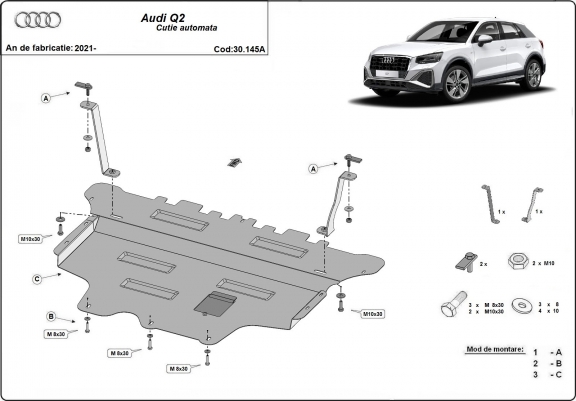 Protection sous moteur et de la boîte de vitesse Audi Q2 - Boîte de vitesse automatique (2021-2026)