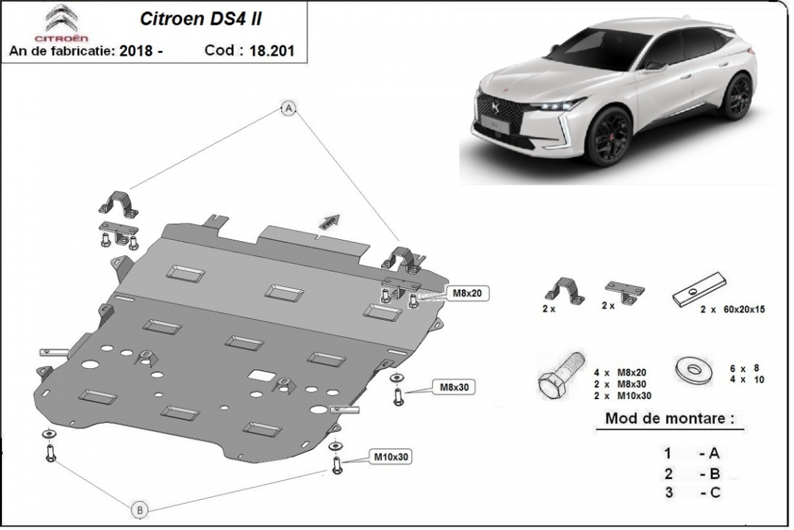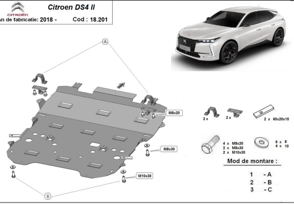 Protection sous moteur et de la boîte de vitesse Citroen DS4 II (2021-2026)