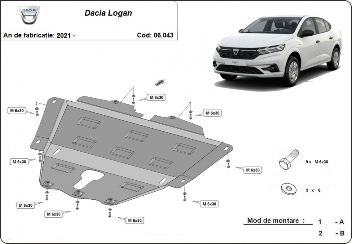 Protection sous moteur et de la boîte de vitesse Dacia Logan (2021-2026)