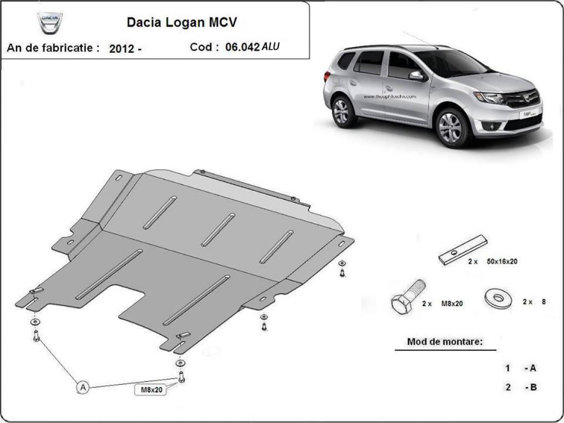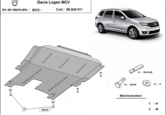 Protection sous moteur et de la boîte de vitesse DACIA LOGAN MCV - Aluminum (2012-2020)