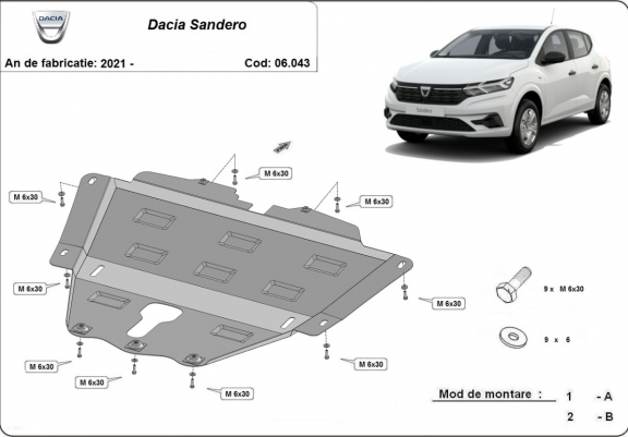 Protection sous moteur et de la boîte de vitesse Dacia Sandero 3 (2021-2026)