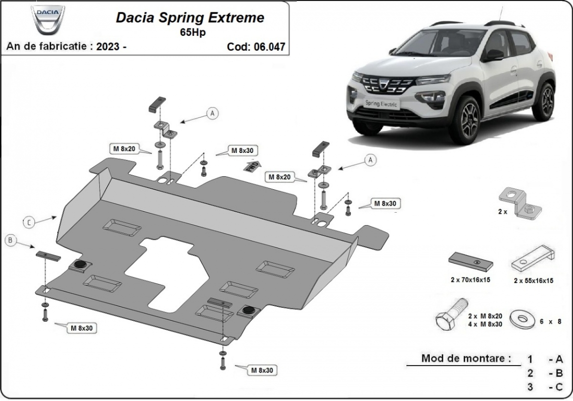 Protection sous moteur et de la boîte de vitesse Dacia Spring Extreme (2023-2025)
