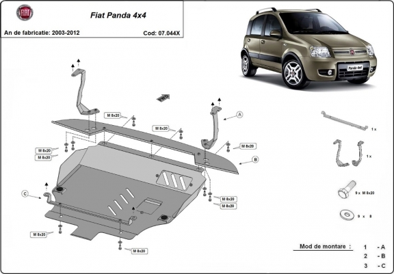 Protection sous moteur et de la boîte de vitesse Fiat Panda 4x4 (2003-2012)