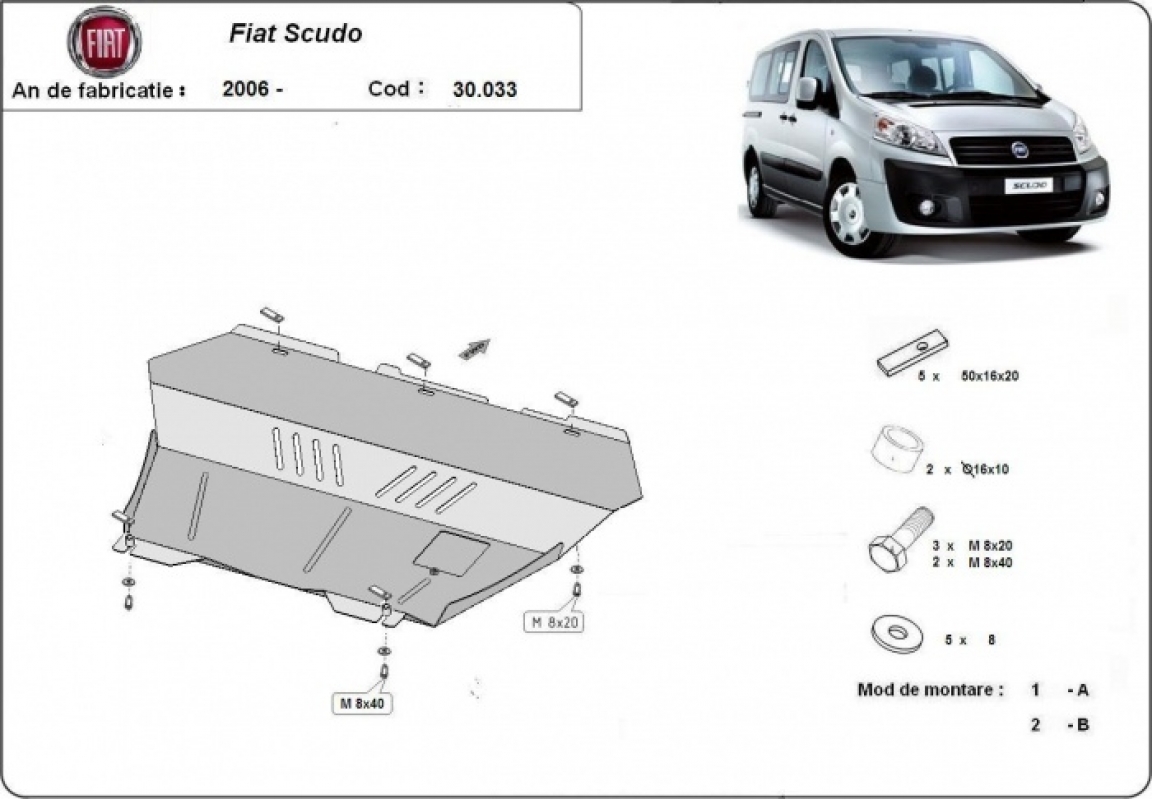 Protection sous moteur et de la boîte de vitesse Fiat Scudo (2006-2016)