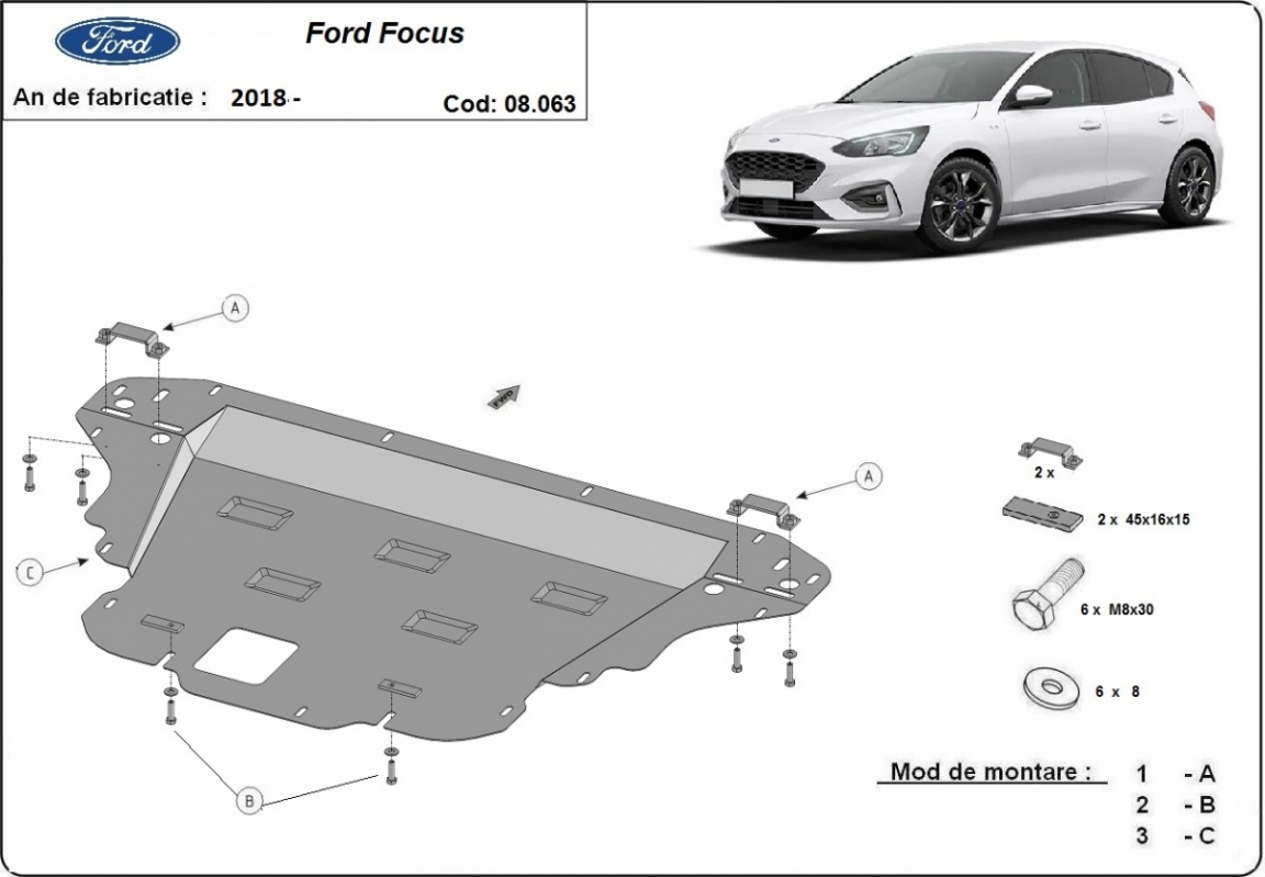 Protection sous moteur et de la boîte de vitesse Ford Focus 4 (2018-2026)