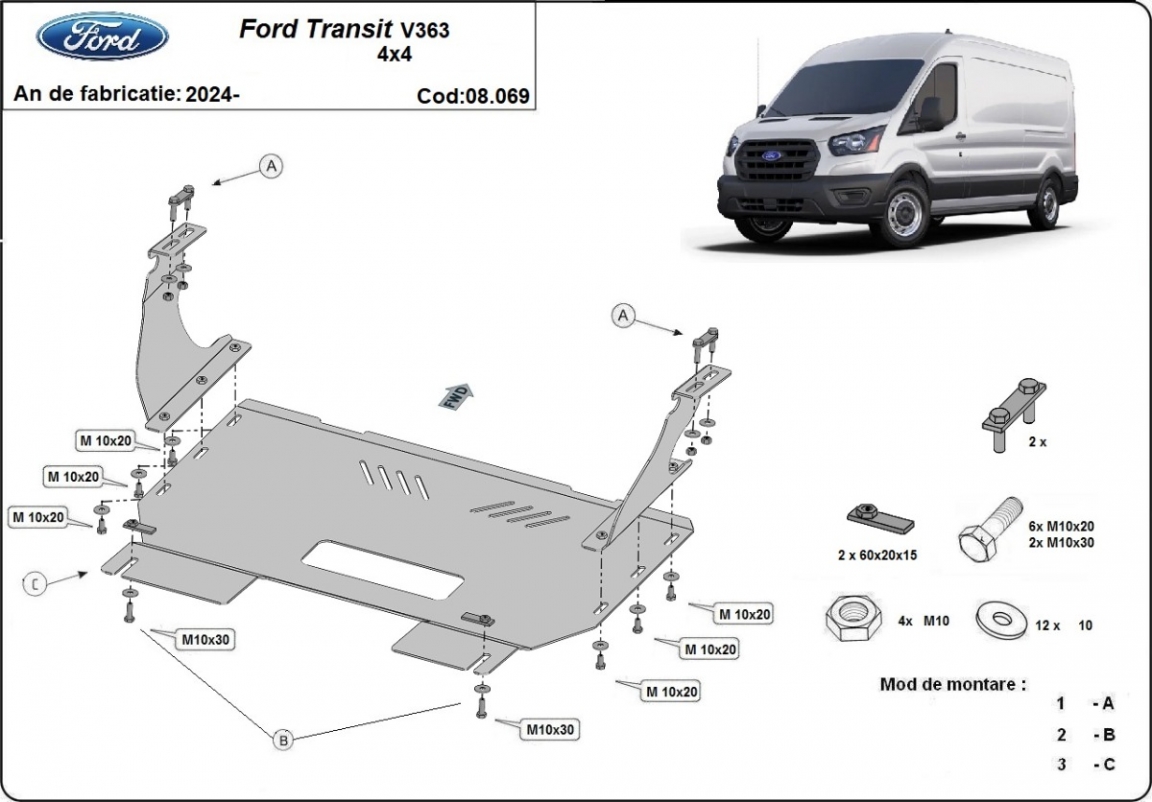 Protection sous moteur et de la boîte de vitesse Ford Transit V363 4x4 (2024-2026)