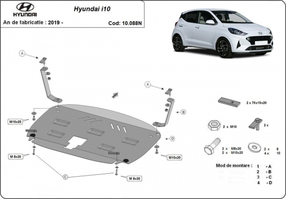 Protection sous moteur et de la boîte de vitesse Hyundai i10 (2019-2026)