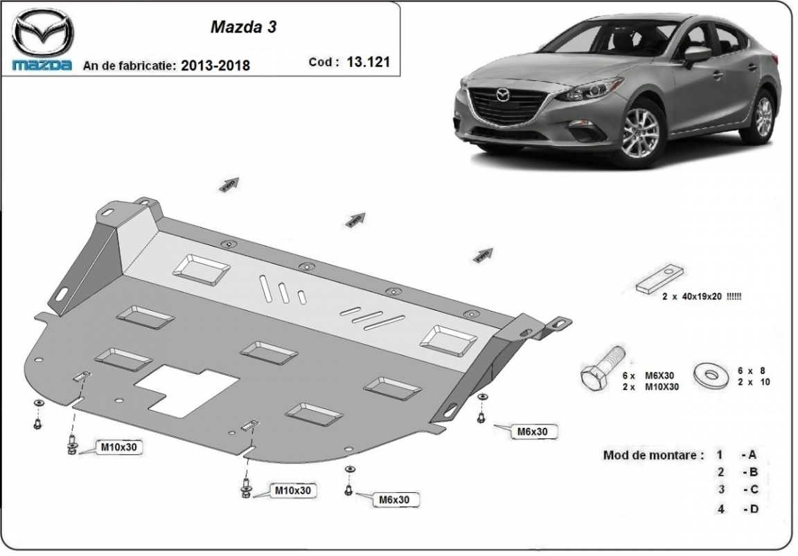 Protection sous moteur et de la boîte de vitesse Mazda 3 (2013-2018)