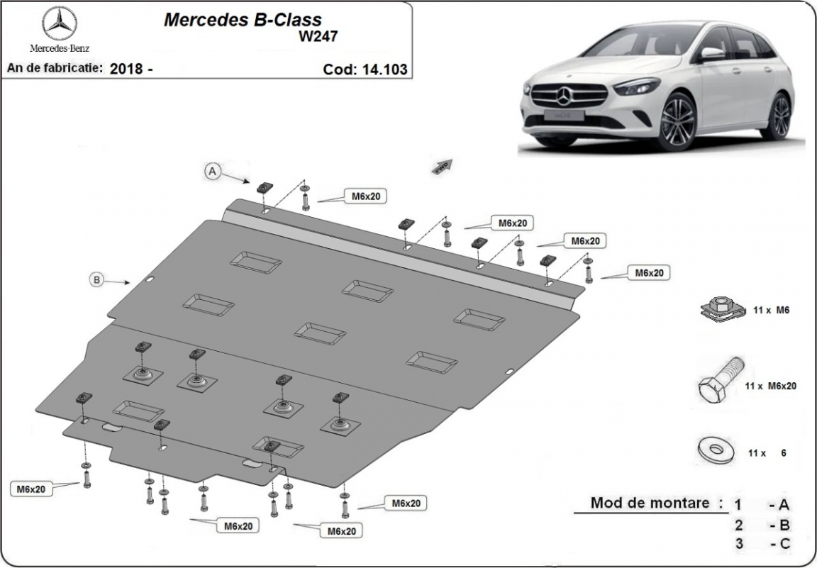 Protection sous moteur et de la boîte de vitesse Mercedes B-Class W247 (2019-2026)