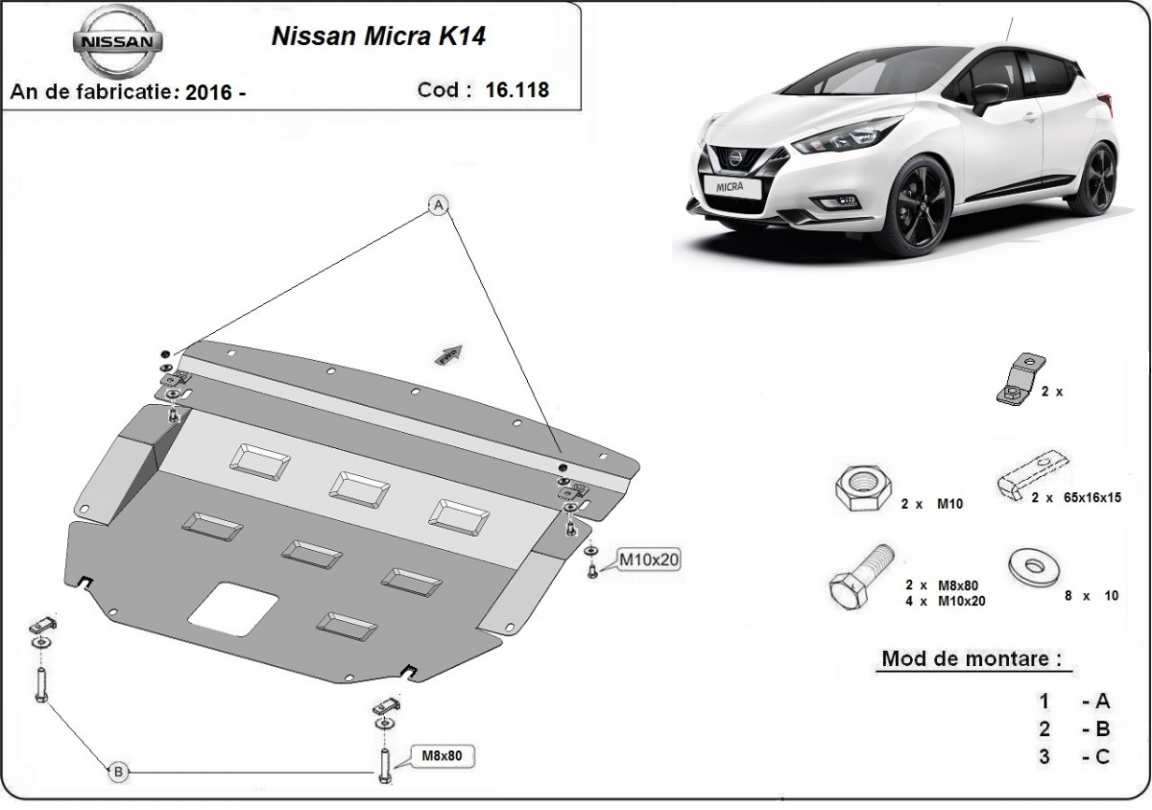 Protection sous moteur et de la boîte de vitesse Nissan Micra (2016-2026)