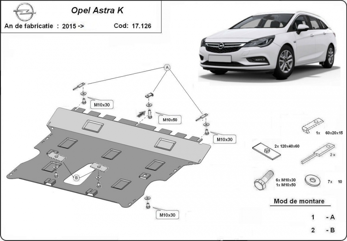 Protection sous moteur et de la boîte de vitesse Opel Astra K (2015-2022)