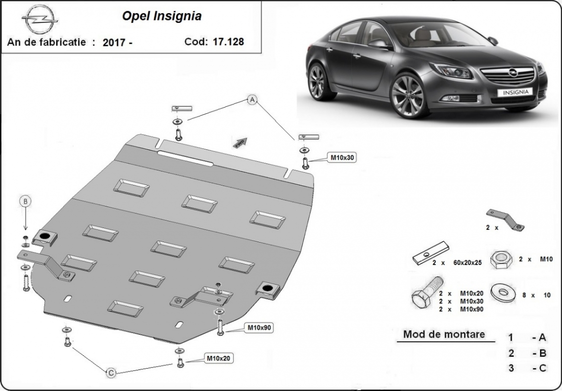 Protection sous moteur et de la boîte de vitesse Opel Insignia (2017-2026)