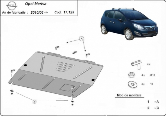 Protection sous moteur et de la boîte de vitesse Opel Meriva B (2010-2017)