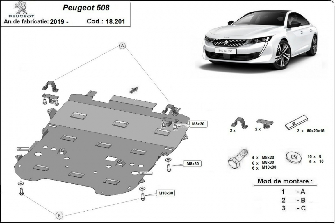 Protection sous moteur et de la boîte de vitesse Peugeot 508 (2018-2026)