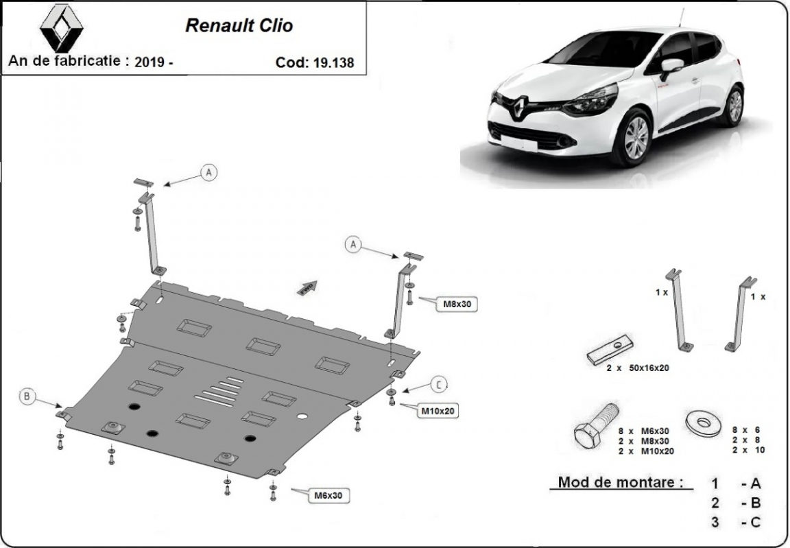 Protection sous moteur et de la boîte de vitesse Renault Clio 5 (2019-2026)