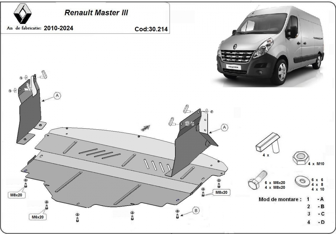 Protection sous moteur et de la boîte de vitesse Renault Master 3 (2010-2024)
