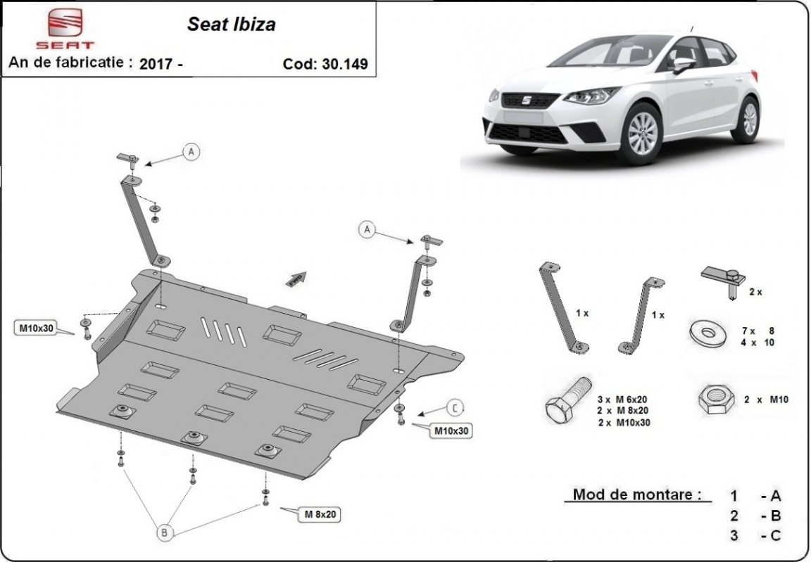 Protection sous moteur et de la boîte de vitesse Seat Ibiza (2017-2026)