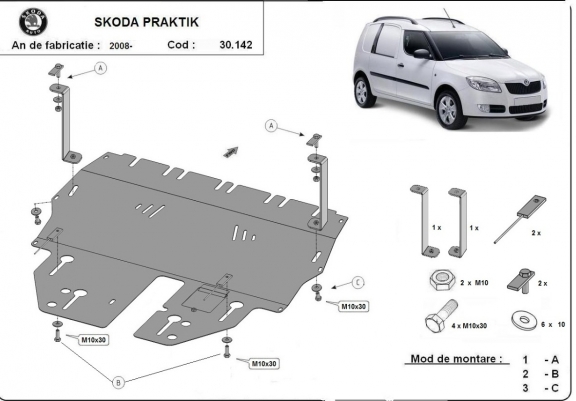 Protection sous moteur et de la boîte de vitesse Skoda Praktik (2006-2015)