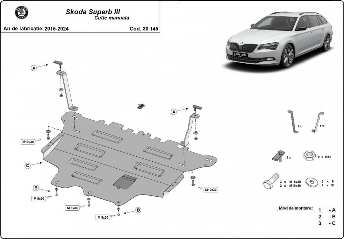 Protection sous moteur et de la boîte de vitesse Skoda Superb - boîte de vitesses manuelle (2015-2024)