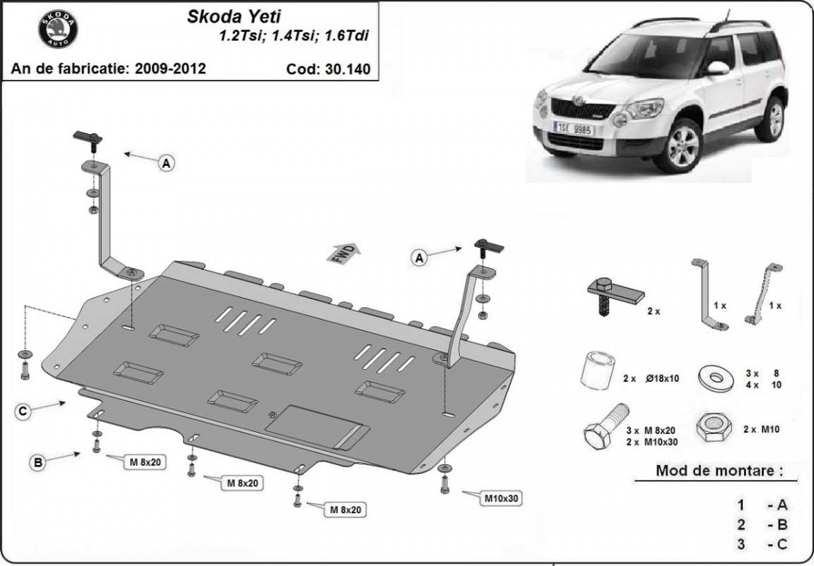Protection sous moteur et de la boîte de vitesse Skoda Yeti (2009-2012)