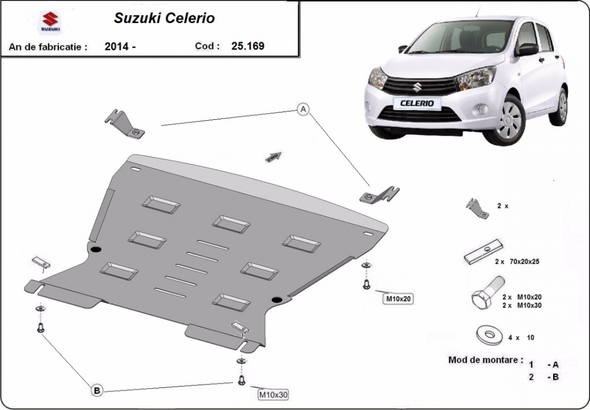 Protection sous moteur et de la boîte de vitesse Suzuki Celerio (2014-2026)