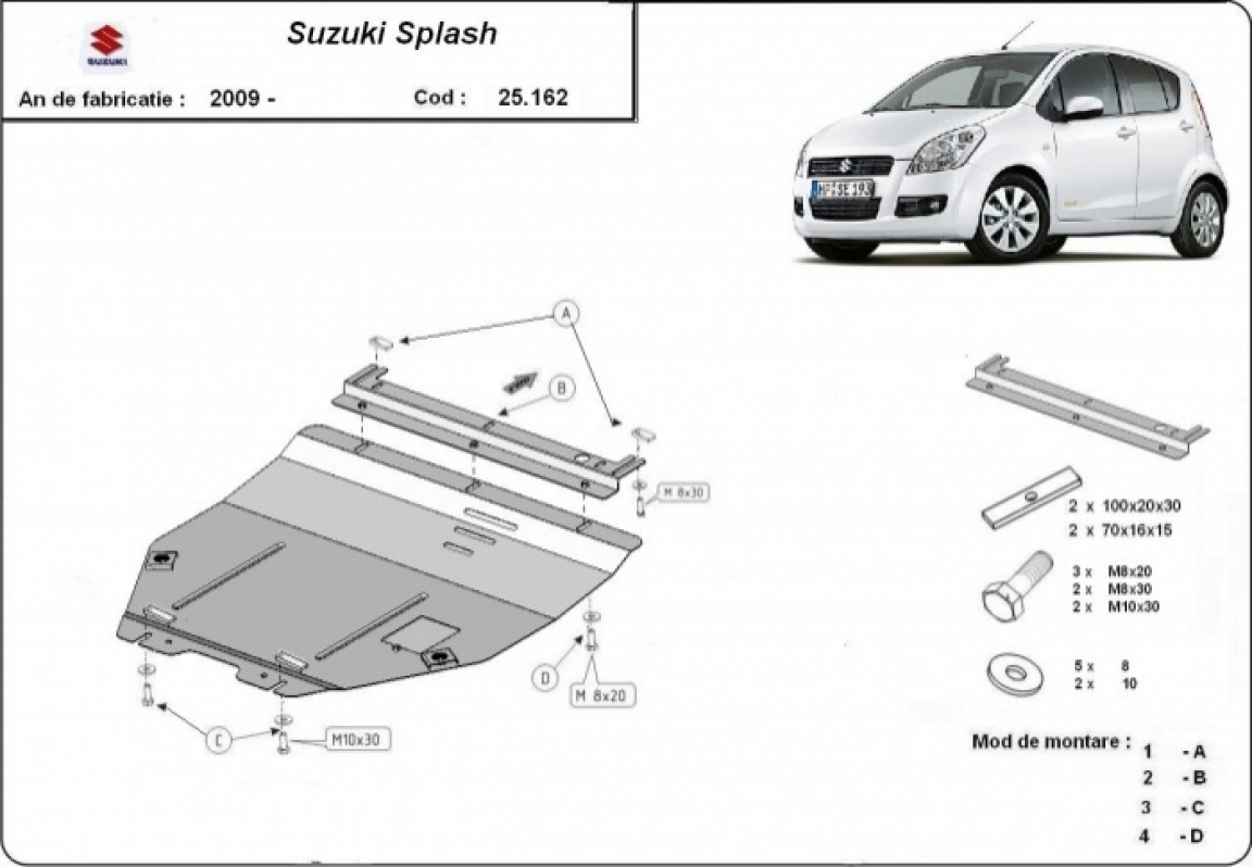 Protection sous moteur et de la boîte de vitesse Suzuki Splash an (2009-2016)