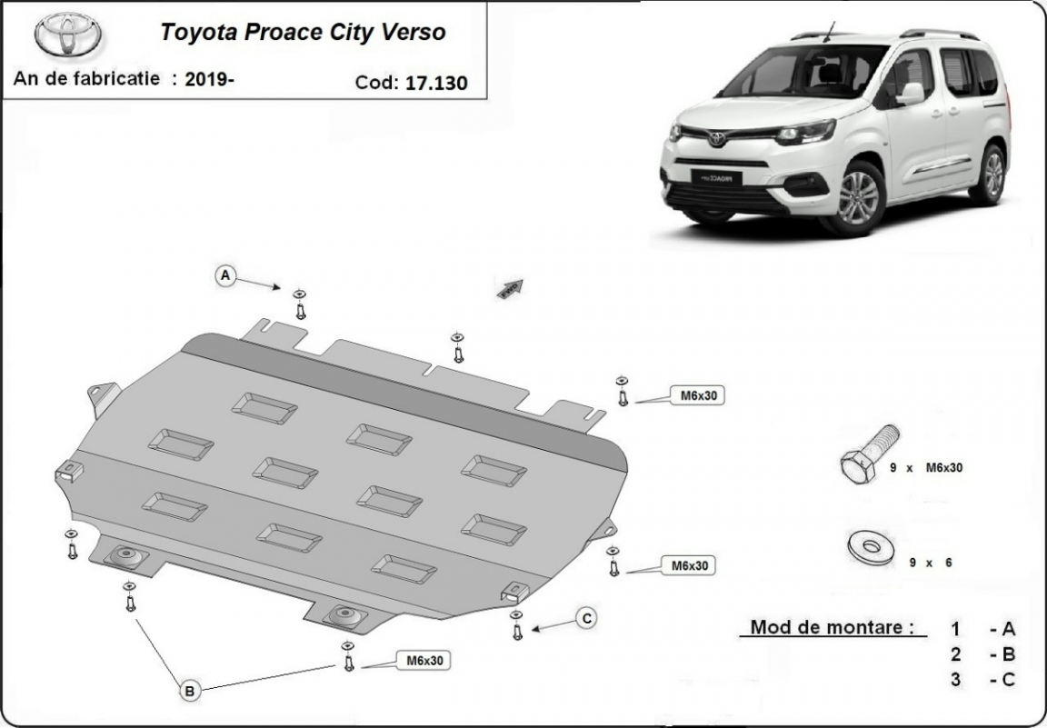 Protection sous moteur et de la boîte de vitesse Toyota Proace City Verso (2019-2026)