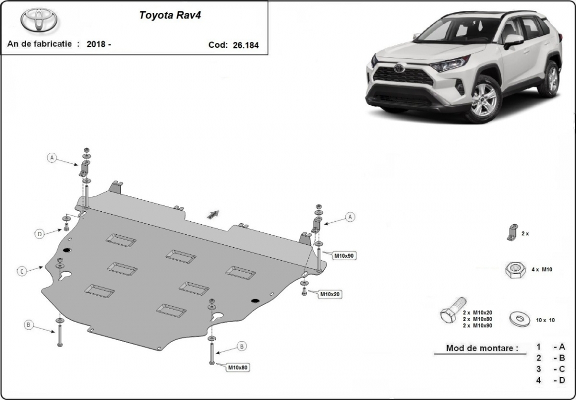 | Chaque voiture a des trous de vis fabriqués en usine pour le montage de la plaque de protection, ce qui rend le montage très facile. Vous pouvez le faire vous-même ou à n'importe quel point de service automatique. |